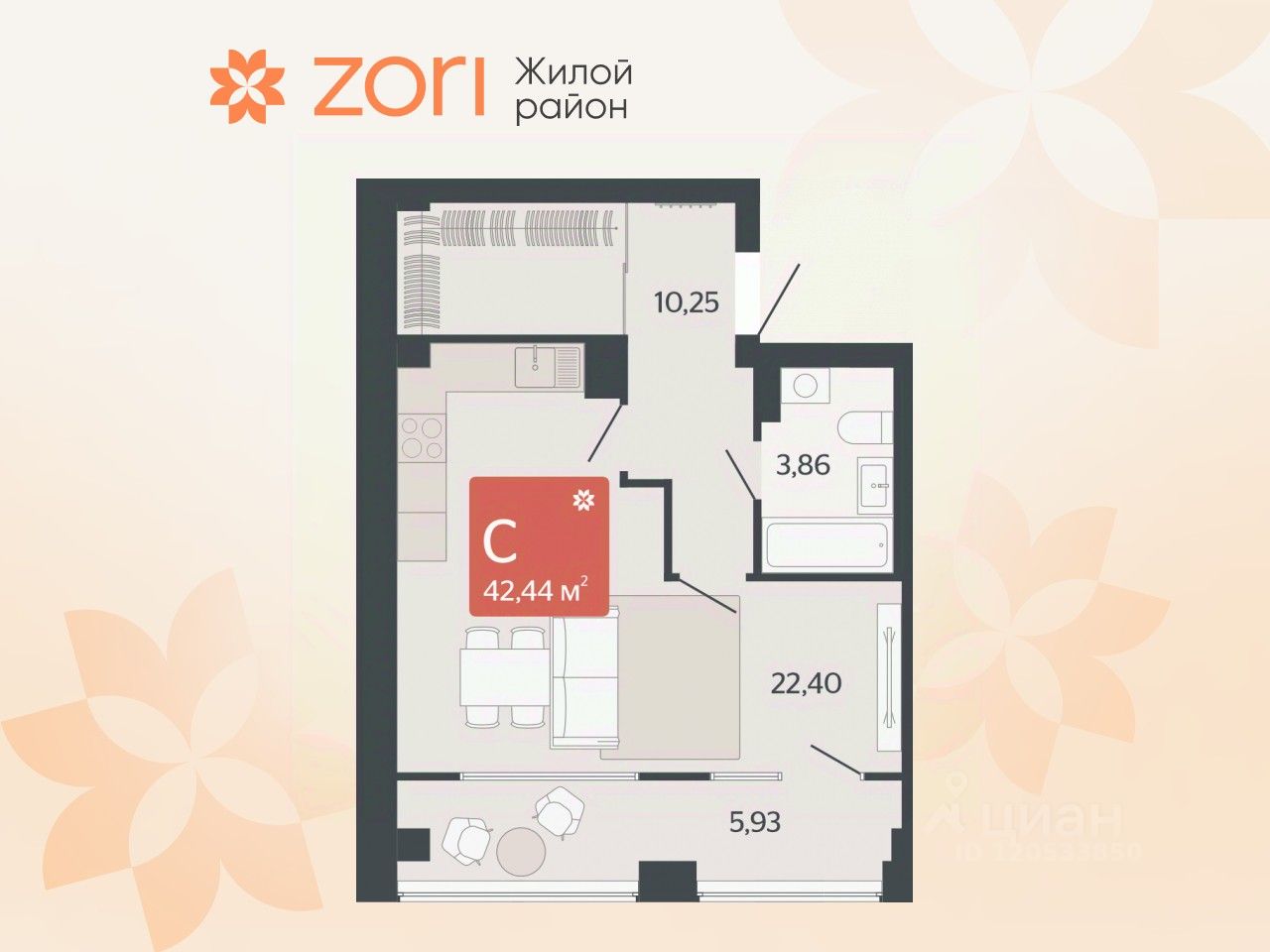 Общая площадь42,44 м²