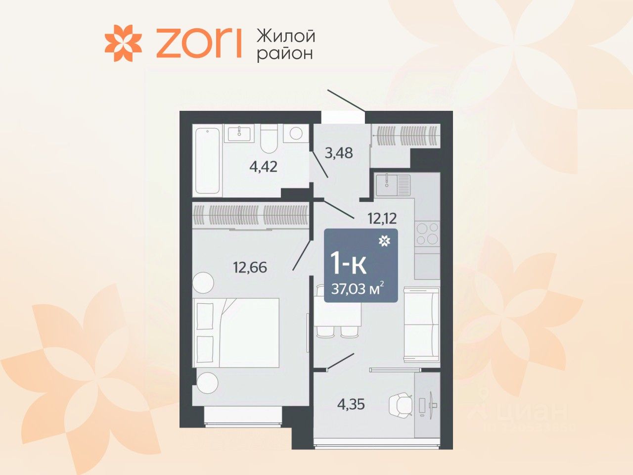 Общая площадь37,03 м²