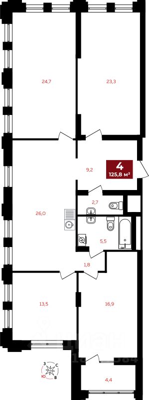 Во всех квартирах высокие потолки 2,9 м, увеличенные окна высотой 1,9 м, кухни-гостиные площадью до 30 м2.