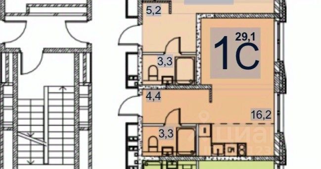 - при входе место под огромный шкаф купе, объединённый сан. узел.