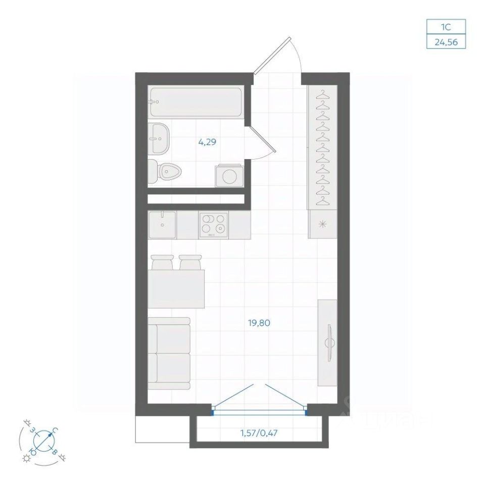 Общая площадь24,56 м²