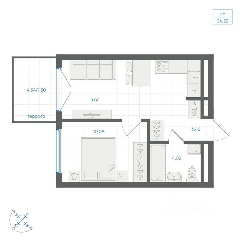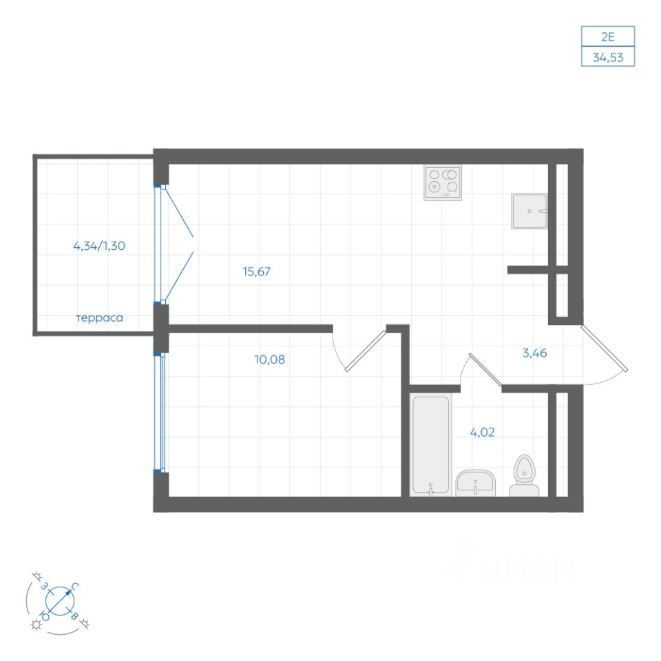 Общая площадь34,53 м²