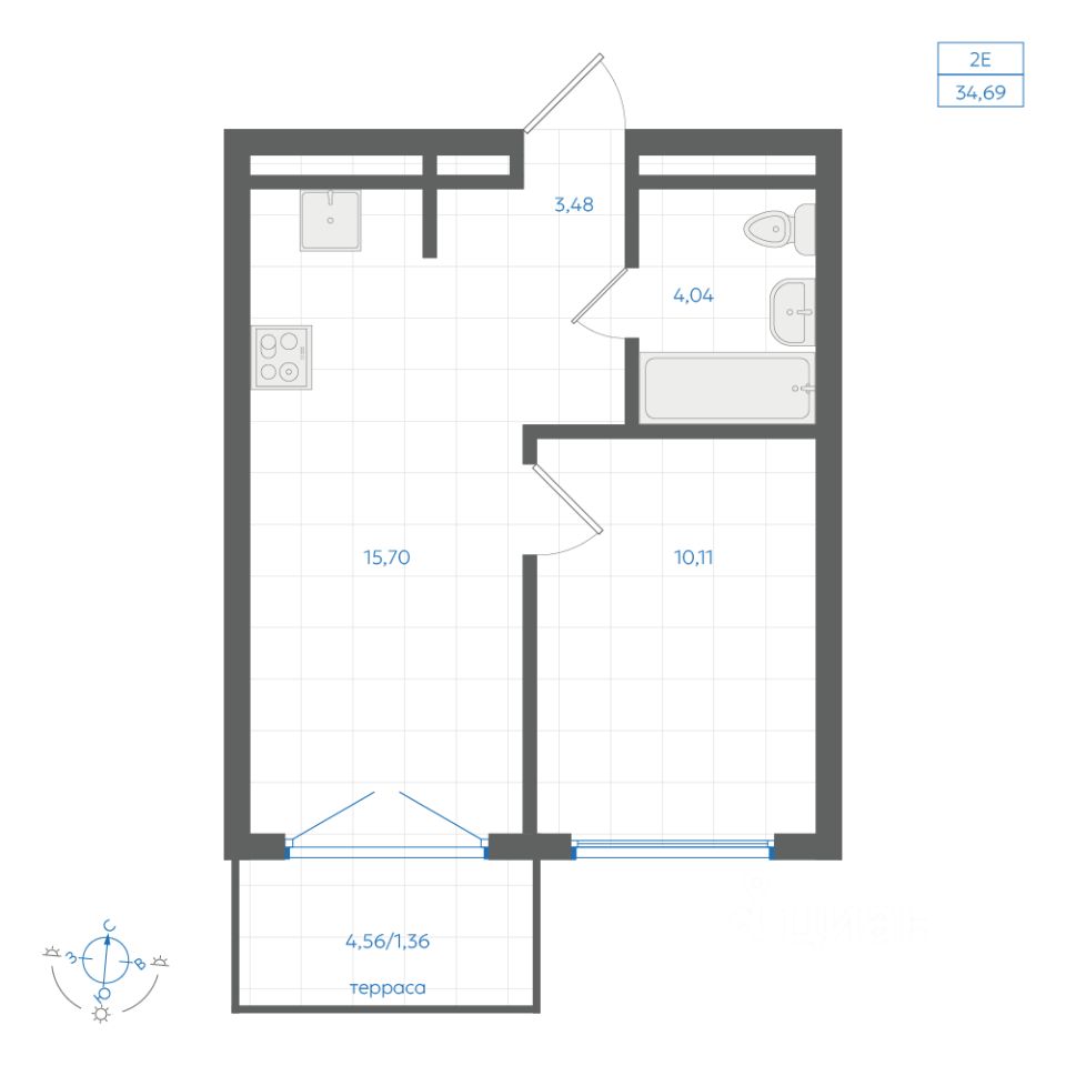 Общая площадь34,69 м²