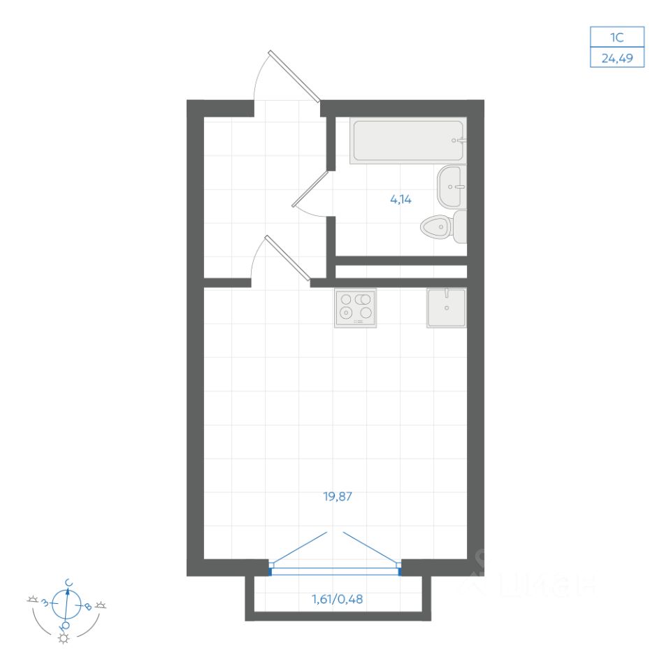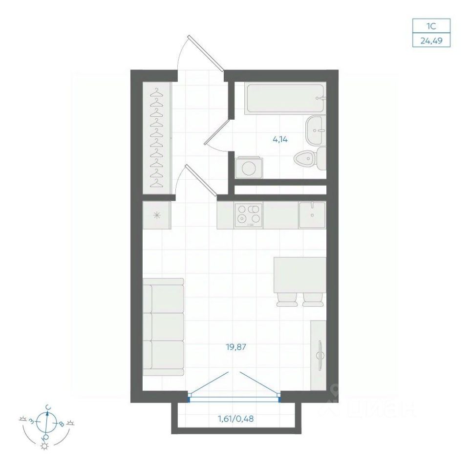 Общая площадь24,53 м²