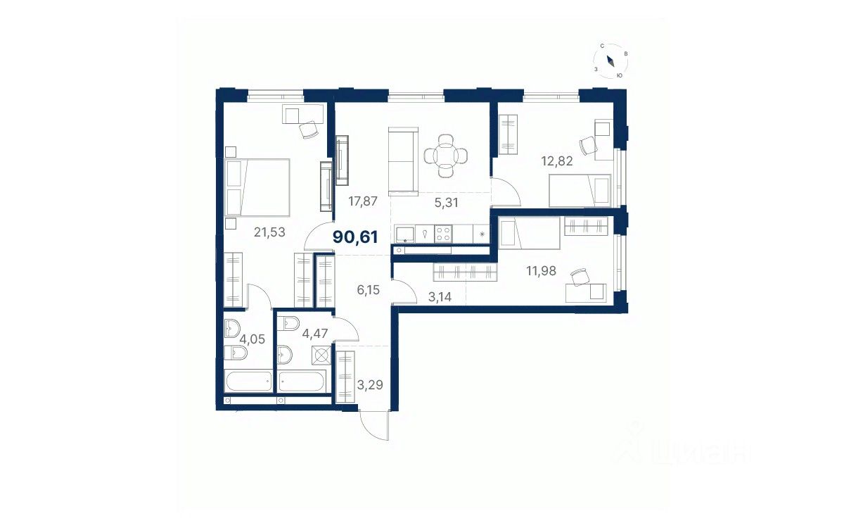 Просторная квартира в "Атлас Юник" — выбор большой семьи и тех, кто ценит пространство и комфорт. Здесь найдётся место для детской, кабинета, уютной спальни и гостиной, где собираются близкие.