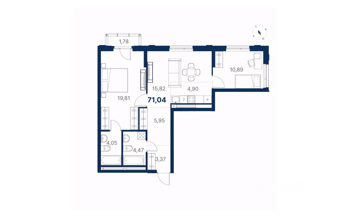 Общая площадь71,03 м²