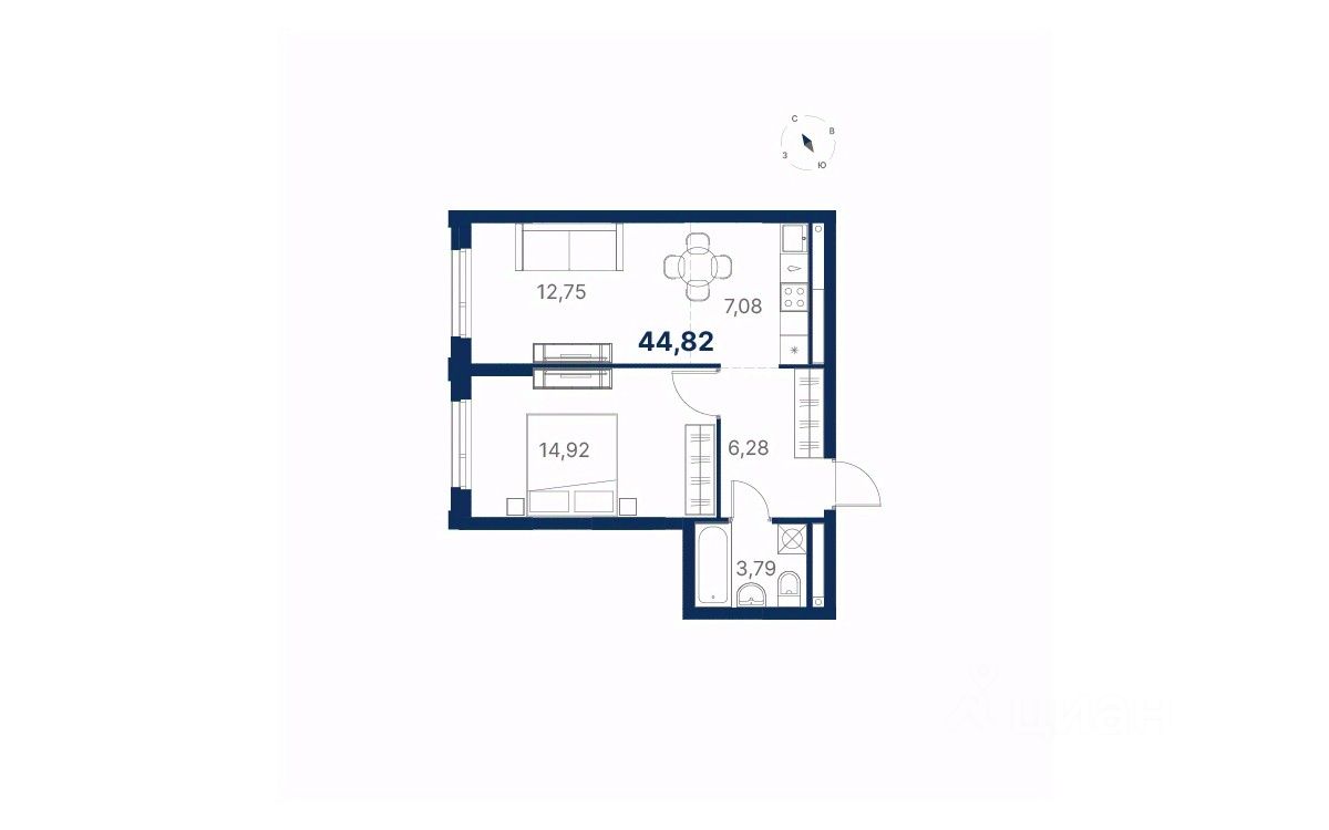 Общая площадь44,83 м²