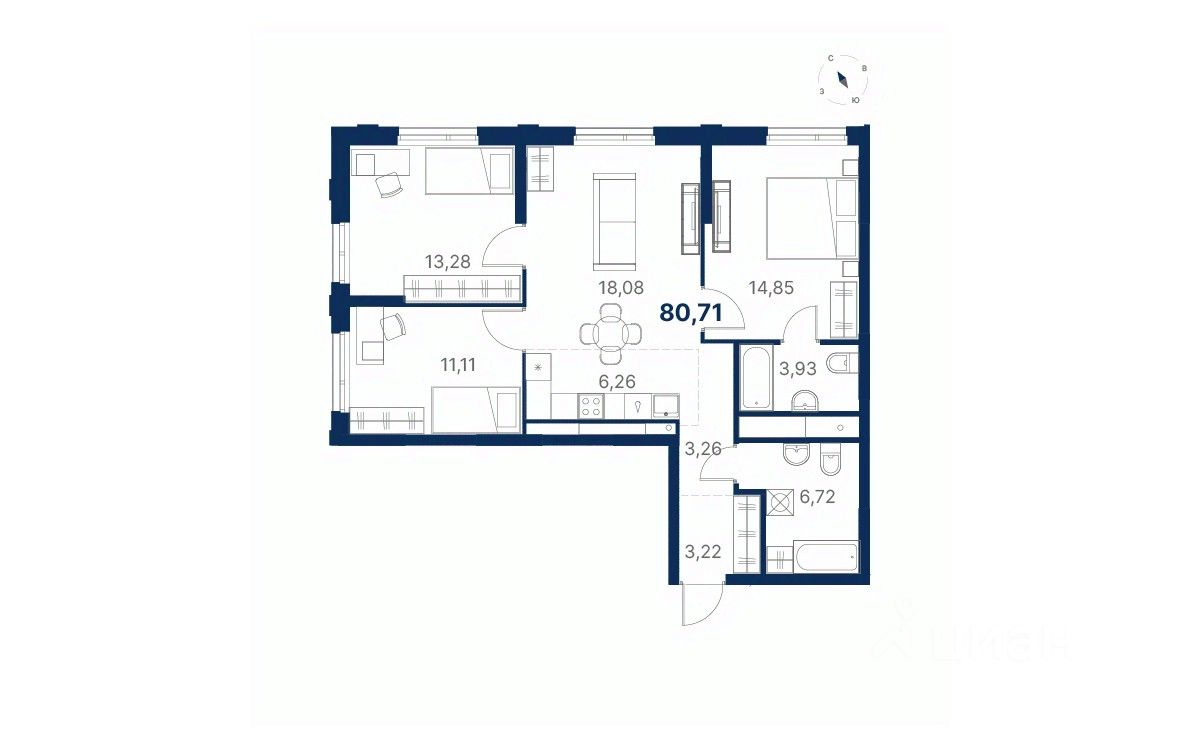 Общая площадь80,76 м²
