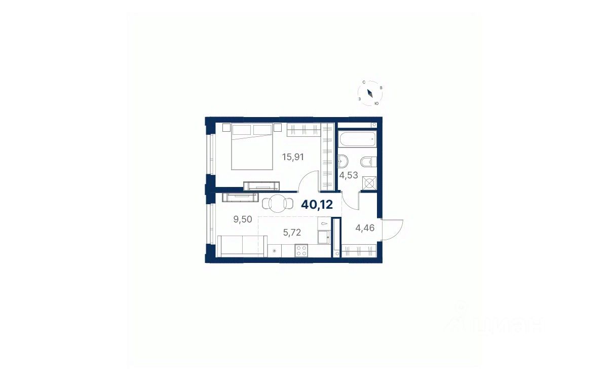 Общая площадь40,12 м²