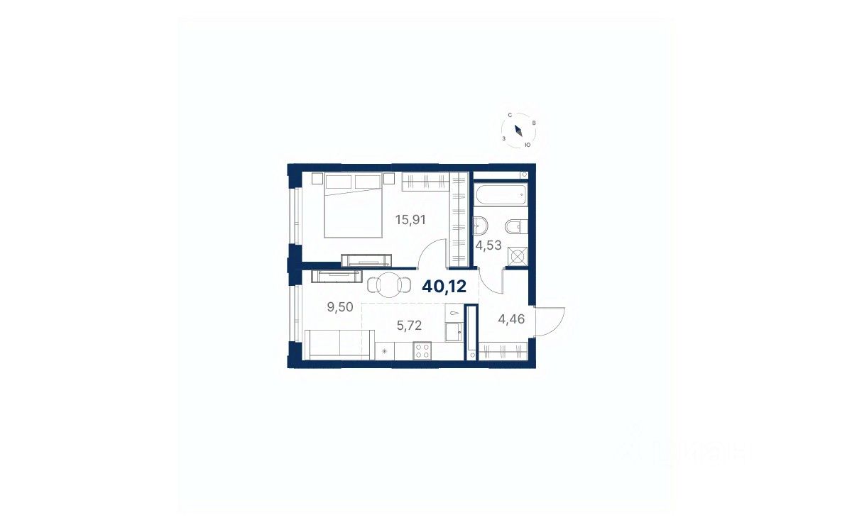 Общая площадь40,12 м²