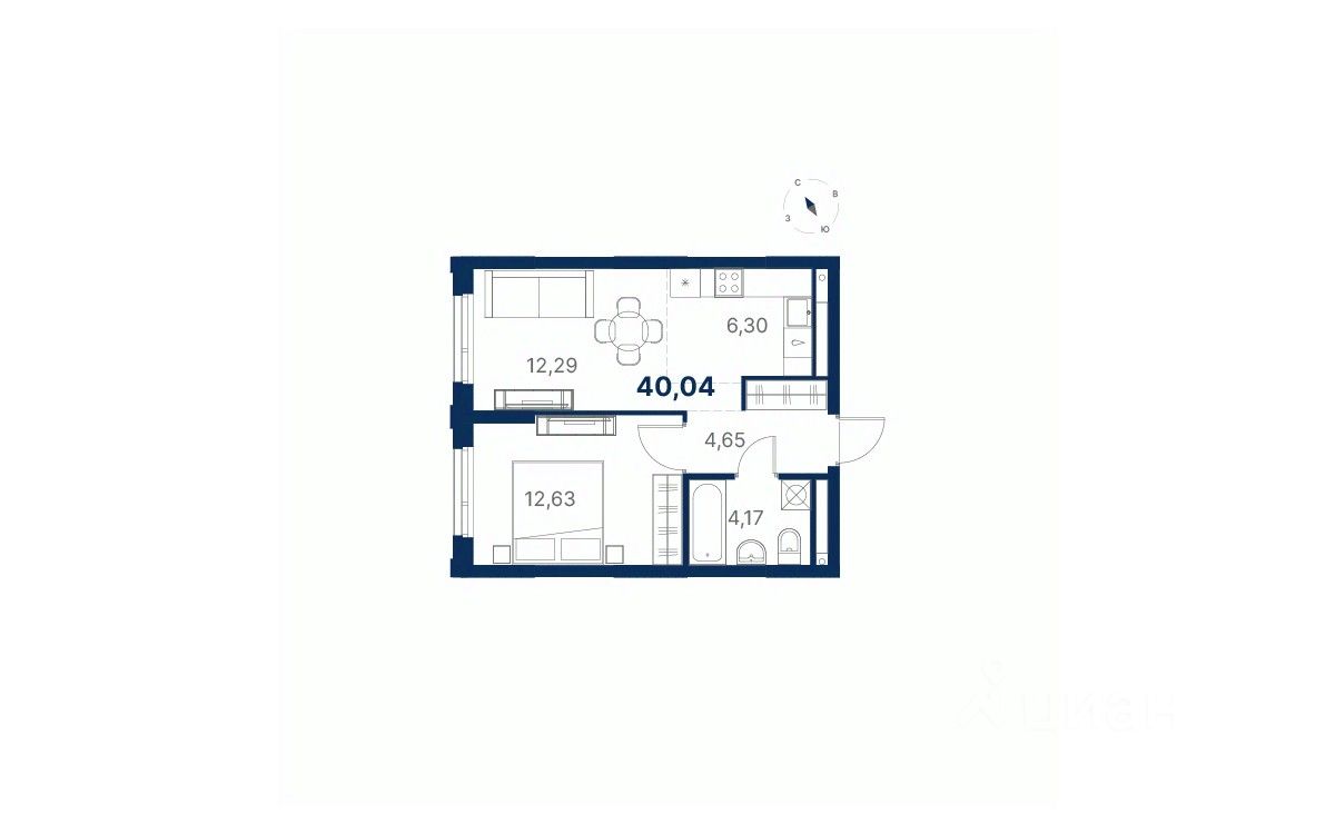 Общая площадь40,04 м²