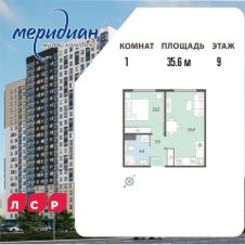 Квартира располагается на 9 этаже 24-этажного дома в ЖК Меридиан.