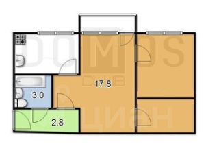 Общая площадь 43 м: просторные комнаты (18 м и 10 м), раздельный санузел (требует обновления), кухня 6 м.