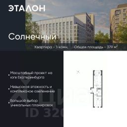 Продается квартира 501, по адресу Свердловская обл., г. Екатеринбург, Чкаловский район, корпус Солнечный, блок 6.1 в Солнечный на 5 этаже, с площадью 37.9 м2.