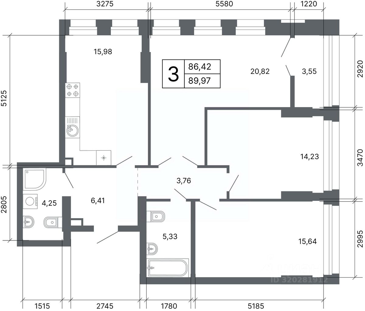 Общая площадь88,6 м²