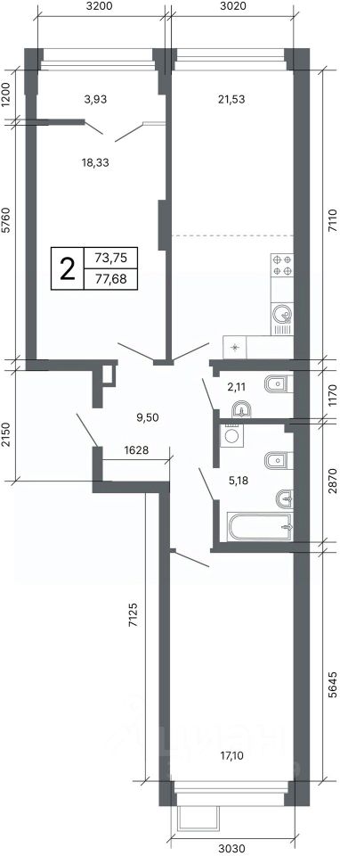 Общая площадь77,1 м²