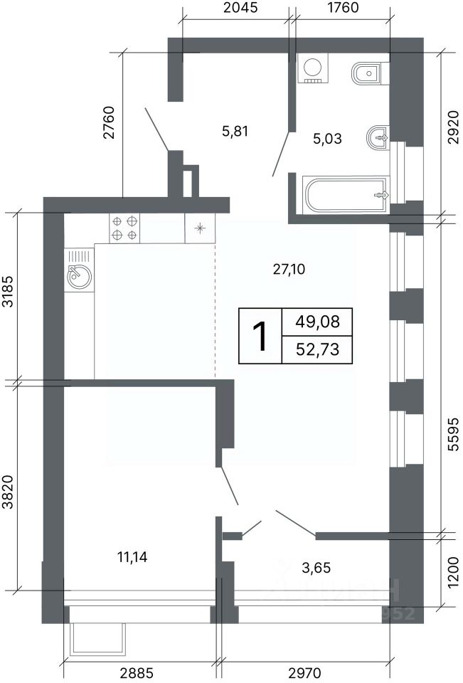 Общая площадь52,1 м²