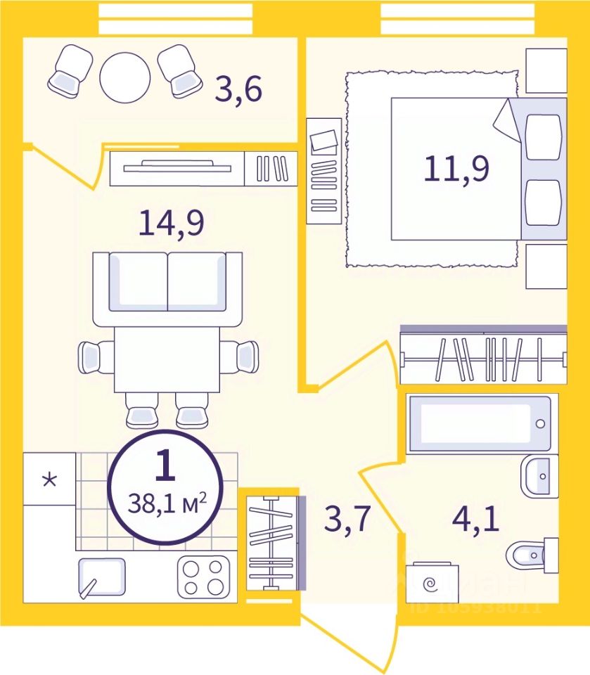 1-комн. квартира с предчистовой отделкой в ЖК "Астон.Движение" на 9 этаже. Общая площадь: 36.3 кв.м., жилая: 11.9 кв.м., площадь просторной кухни-столовой: 14.9 кв.м. Все окна выходят на одну сторону. В квартире одна лоджия, один совмещенный санузел. Высота потолков 2.7 м.