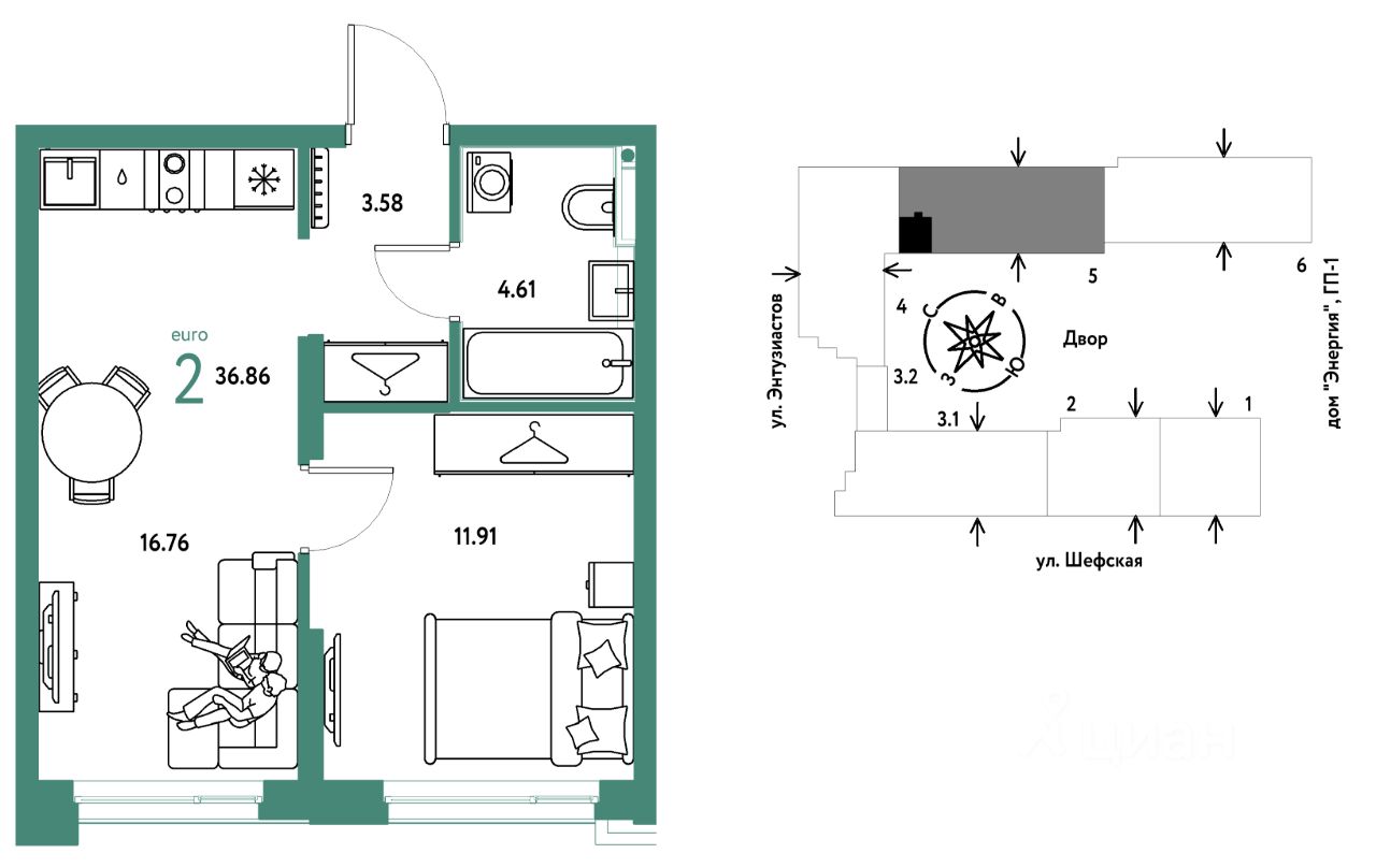 Продаётся 2-комнатная квартира в строящемся доме (Потенциал), срок сдачи: IV-кв. 2027, общей площадью 36.86 кв.м., на 2 этаже. Новый жилой комплекс "Страна.Энтузиастов" от группы компаний "Страна Девелопмент" расположен по адресу: г. Екатеринбург, по ул. Шефская.