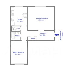 Просторная двухкомнатная квартира с изолированными комнатами (18,3 и 12,3 м²) — идеальный вариант для семьи или пары.