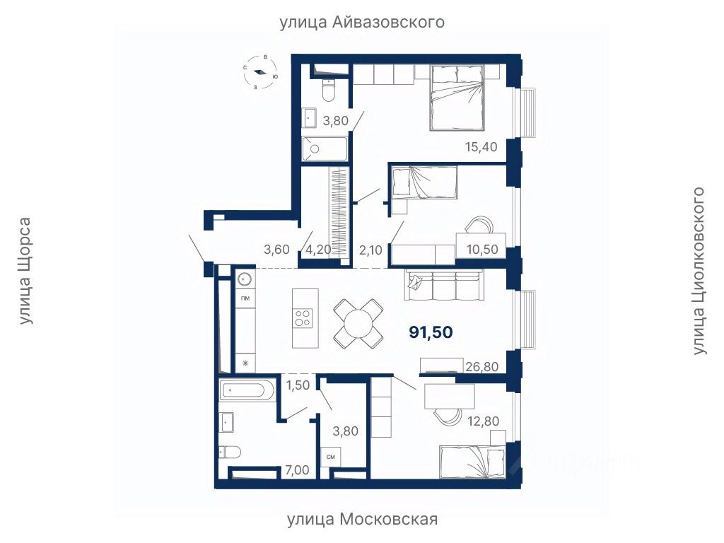Просторная квартира — это решение для большой семьи, для тех, кто ценит личное пространство. Здесь хватит места для детских игр, родительской спальни, кабинета и гостиной, создавая комфорт для каждого члена семьи. "Парк Столиц" — это жилая экосистема бизнес-класса: десять секций переменной этажности с закрытой территорией, уникальное дворовое пространство с ручьем, собственная УК, доступность в коммерческие помещения прямо из квартиры. В проектах "Атлас Девелопмент" вы можете воспользоваться рассрочкой, ипотекой, трейд-ин или комбо-покупкой в зависимости от конкретного комплекса. Комплекс находится в квартале улиц Московская — Щорса — Айвазовского — Циолковского. Развитая транспортная доступность района позволяют быстро добраться в любую точку города: в шаговой доступности находятся станция метро "Чкаловская" и остановки общественного транспорта Рядом 8 школ, 7 детских садов, магазины, аптеки и медицинские учреждения.