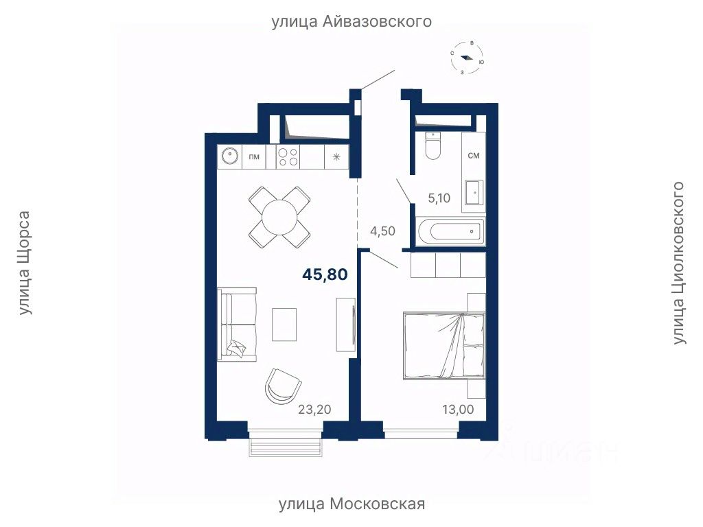 Общая площадь45,8 м²