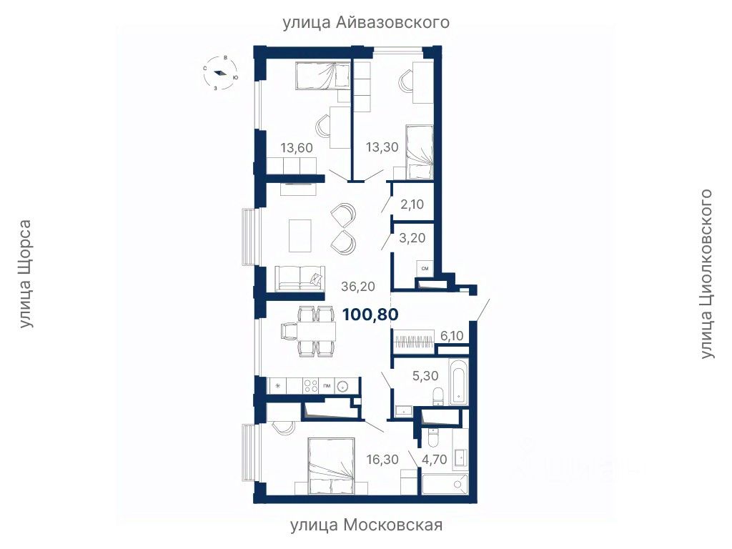 Общая площадь100,8 м²