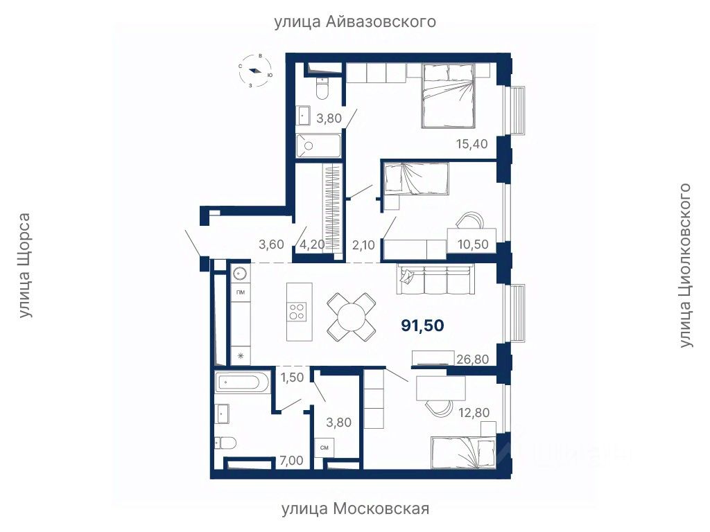 До конца ноября — скидка до 10% при 100% оплате и в ипотеку! Просторная квартира в "Парке Столиц" — выбор тех, кто ценит личное пространство и качество жизни. Здесь достаточно места для детских игр, уютной родительской спальни, кабинета и гостиной, где собирается вся семья. "Парк Столиц" — современный жилой комплекс бизнес-класса с закрытой территорией, уникальным двором с ручьём и собственной УК. Локация — между ул. Московская, Щорса, Айвазовского и Циолковского, в шаговой доступности от метро Чкаловская. Поблизости школы, сады, магазины, аптеки, медицинские центры. Возможны ипотека, рассрочка, трейд-ин и комбо-покупка.
