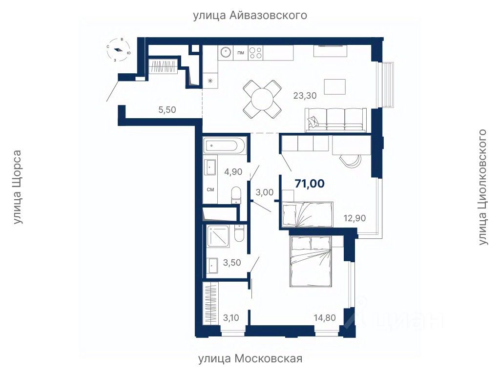 Двухкомнатная квартира — это идеальное решение для тех, кто ценит комфорт или планирует расширение семьи. Здесь достаточно места для создания уютного семейного очага, личного кабинета или просторной гостиной, а планировка легко адаптируется под ваши потребности "Парк Столиц" — это жилая экосистема бизнес-класса: десять секций переменной этажности с закрытой территорией, уникальное дворовое пространство с ручьем, собственная УК, доступность в коммерческие помещения прямо из квартиры. В проектах "Атлас Девелопмент" вы можете воспользоваться рассрочкой, ипотекой, трейд-ин или комбо-покупкой в зависимости от конкретного комплекса. Комплекс находится в квартале улиц Московская — Щорса — Айвазовского — Циолковского. Развитая транспортная доступность района позволяют быстро добраться в любую точку города: в шаговой доступности находятся станция метро "Чкаловская" и остановки общественного транспорта Рядом 8 школ, 7 детских садов, магазины, аптеки и медицинские учреждения.
