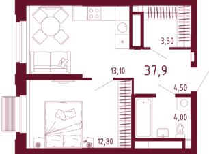 Общая площадь38,2 м²