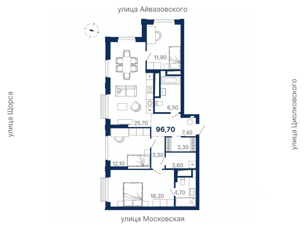 До конца ноября — скидка до 10% при 100% оплате и в ипотеку! Просторная квартира в "Парке Столиц" — выбор тех, кто ценит личное пространство и качество жизни. Здесь достаточно места для детских игр, уютной родительской спальни, кабинета и гостиной, где собирается вся семья. "Парк Столиц" — современный жилой комплекс бизнес-класса с закрытой территорией, уникальным двором с ручьём и собственной УК. Локация — между ул. Московская, Щорса, Айвазовского и Циолковского, в шаговой доступности от метро Чкаловская. Поблизости школы, сады, магазины, аптеки, медицинские центры. Возможны ипотека, рассрочка, трейд-ин и комбо-покупка.