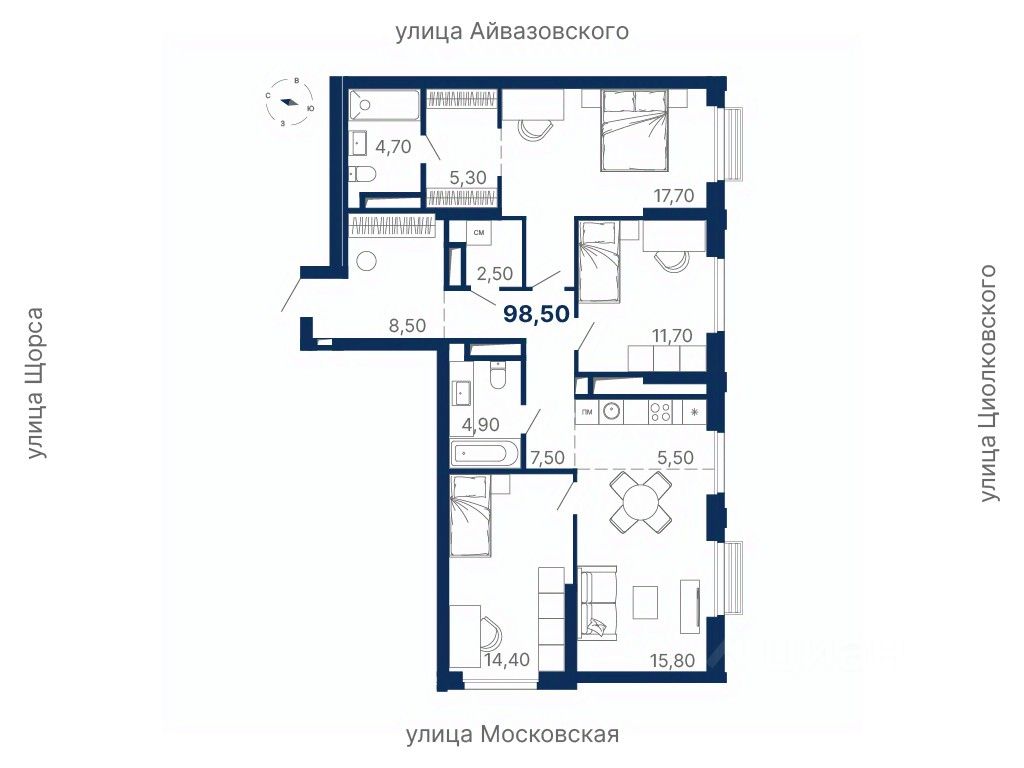 Общая площадь98,5 м²