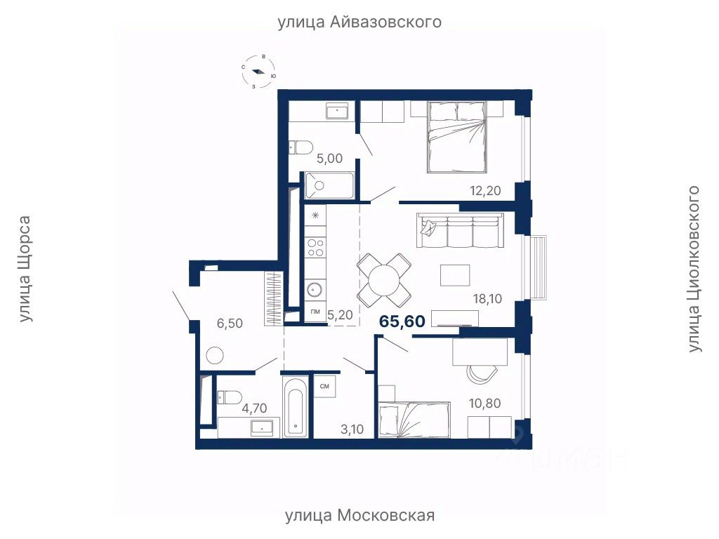 Общая площадь65,6 м²