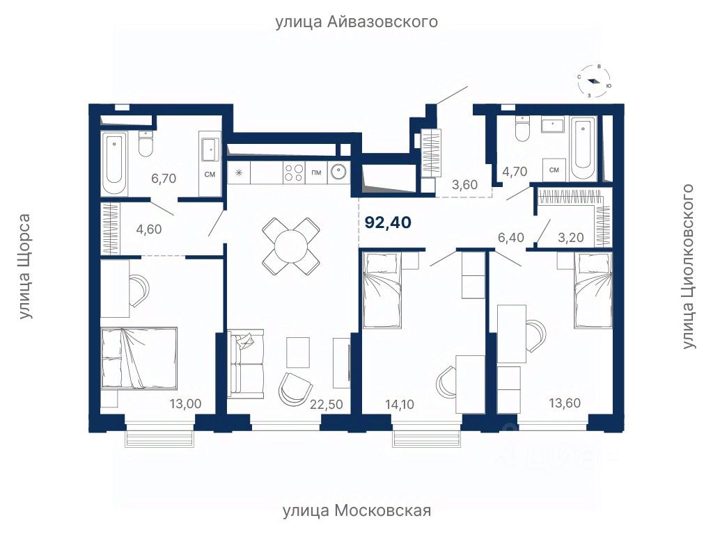 Локация — между ул. Московская, Щорса, Айвазовского и Циолковского, в шаговой доступности от метро Чкаловская.