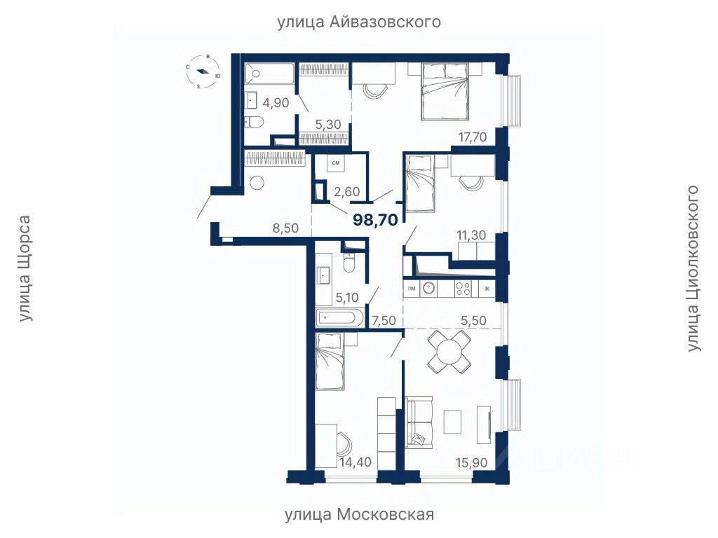 Просторная квартира — это решение для большой семьи, для тех, кто ценит личное пространство. Здесь хватит места для детских игр, родительской спальни, кабинета и гостиной, создавая комфорт для каждого члена семьи. "Парк Столиц" — это жилая экосистема бизнес-класса: десять секций переменной этажности с закрытой территорией, уникальное дворовое пространство с ручьем, собственная УК, доступность в коммерческие помещения прямо из квартиры. В проектах "Атлас Девелопмент" вы можете воспользоваться рассрочкой, ипотекой, трейд-ин или комбо-покупкой в зависимости от конкретного комплекса. Комплекс находится в квартале улиц Московская — Щорса — Айвазовского — Циолковского. Развитая транспортная доступность района позволяют быстро добраться в любую точку города: в шаговой доступности находятся станция метро "Чкаловская" и остановки общественного транспорта Рядом 8 школ, 7 детских садов, магазины, аптеки и медицинские учреждения.