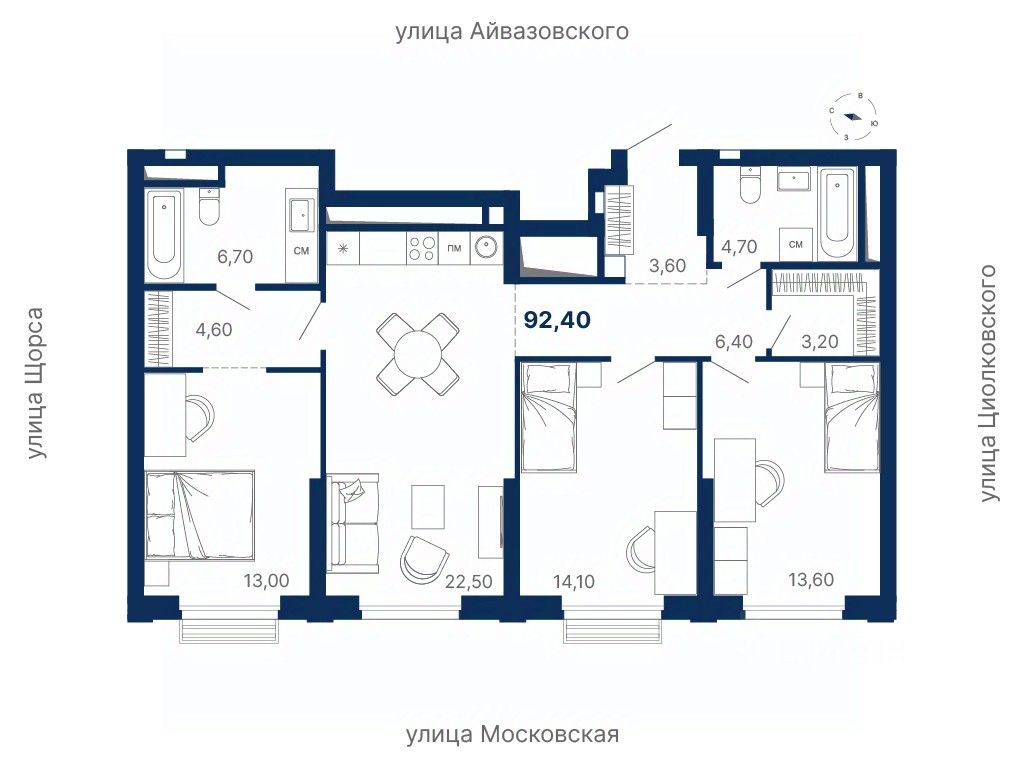 Просторная квартира — это решение для большой семьи, для тех, кто ценит личное пространство. Здесь хватит места для детских игр, родительской спальни, кабинета и гостиной, создавая комфорт для каждого члена семьи. "Парк Столиц" — это жилая экосистема бизнес-класса: десять секций переменной этажности с закрытой территорией, уникальное дворовое пространство с ручьем, собственная УК, доступность в коммерческие помещения прямо из квартиры. В проектах "Атлас Девелопмент" вы можете воспользоваться рассрочкой, ипотекой, трейд-ин или комбо-покупкой в зависимости от конкретного комплекса. Комплекс находится в квартале улиц Московская — Щорса — Айвазовского — Циолковского. Развитая транспортная доступность района позволяют быстро добраться в любую точку города: в шаговой доступности находятся станция метро "Чкаловская" и остановки общественного транспорта Рядом 8 школ, 7 детских садов, магазины, аптеки и медицинские учреждения.