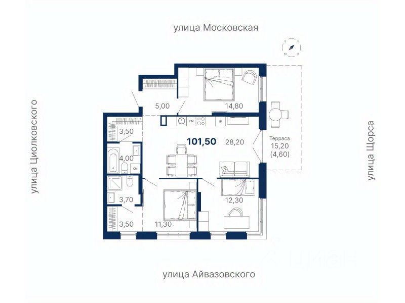 Локация — между ул. Московская, Щорса, Айвазовского и Циолковского, в шаговой доступности от метро Чкаловская.