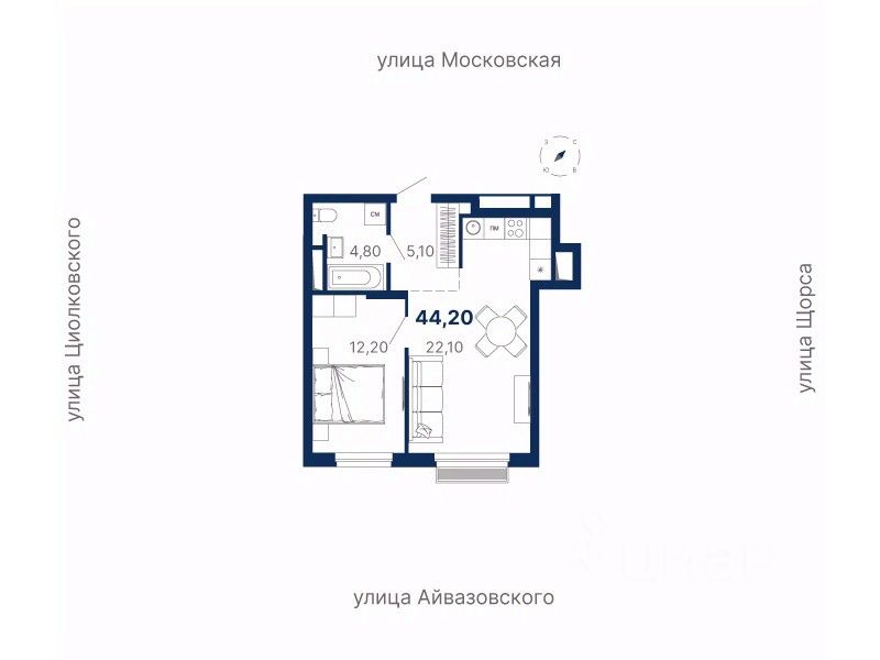 Общая площадь44,1 м²