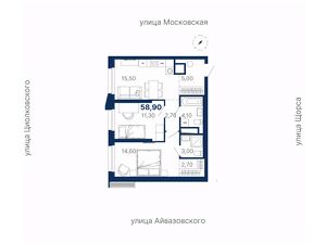 Общая площадь58,9 м²