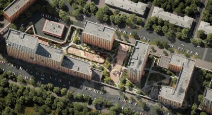 - Закрытый зеленый двор для игр и спорта, единый на весь комплекс, свободный от машин.
