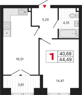 Продаётся квартира в ЖК "Тёплые кварталы". 1-комнатная квартира, 44,48 м², 229, Очередь 3, дом 2. Стоимость указана с учетом чистовой отделки.