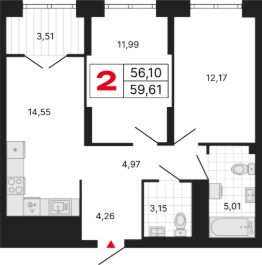 Продаётся квартира в ЖК "Тёплые кварталы". 2-комнатная квартира, 59,61 м²,  598, Очередь 3, дом 2. Стоимость указана с учетом чистовой отделки.