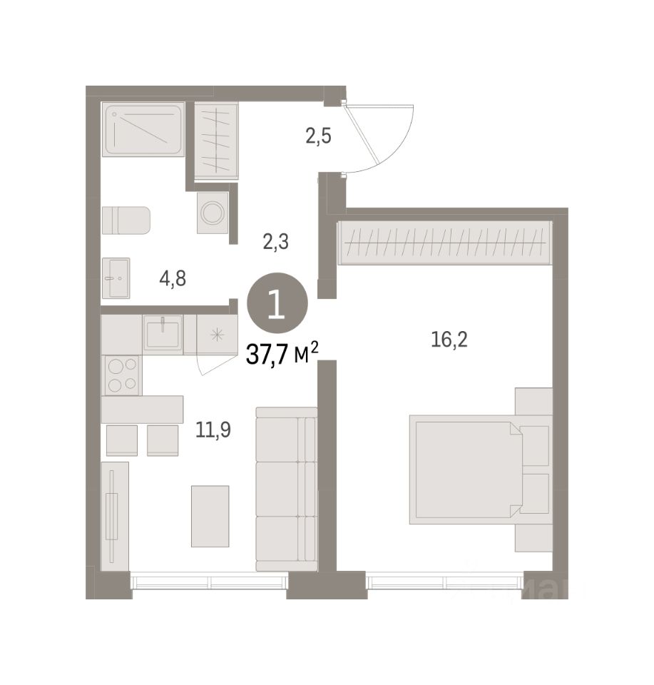 Квартира с кухней-гостиной и одной спальней в районе Шишимская горка. Особенности планировки: окна в пол, вид во двор, панорамное остекление, предчистовая отделка.