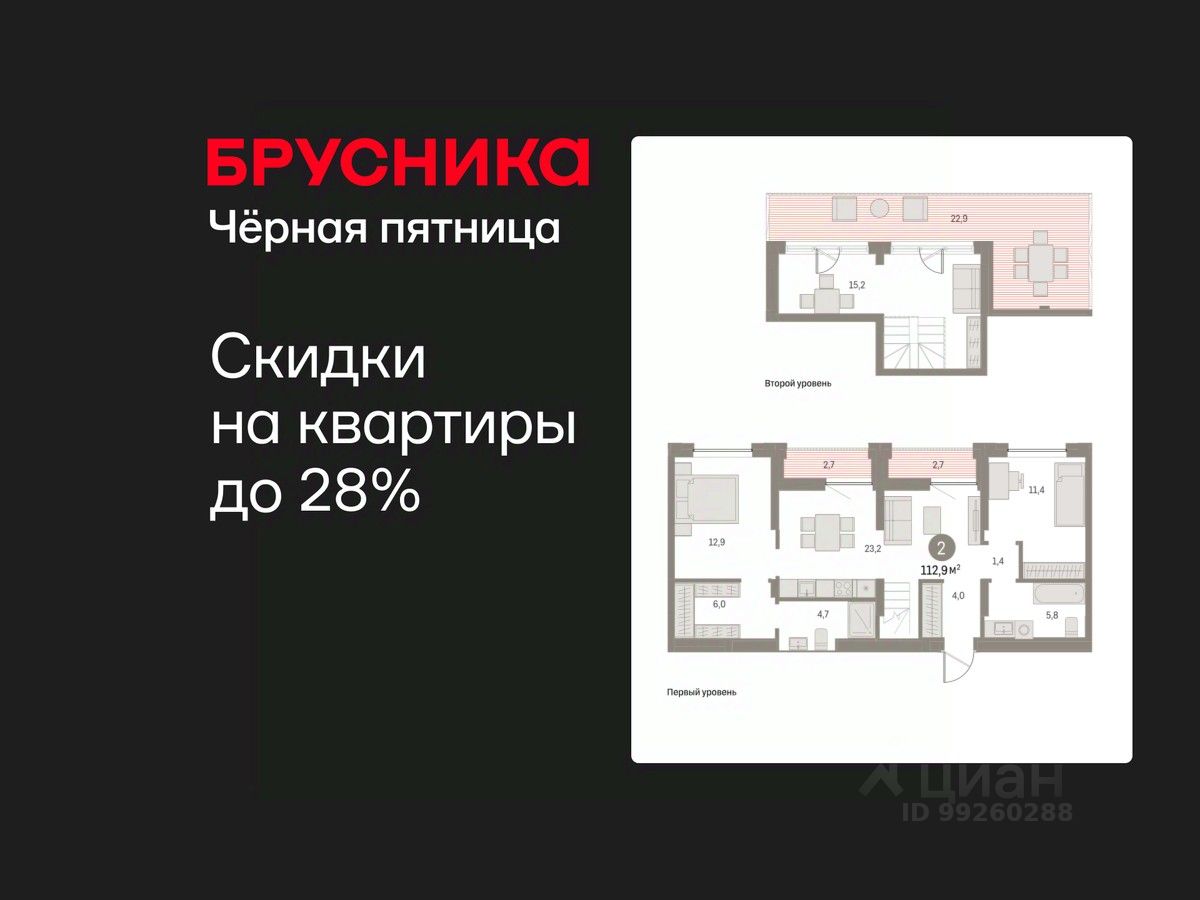 Двухуровневая квартира с кухней-гостиной и двумя спальнями в районе Шишимская горка. Особенности планировки: гардеробная, двухуровневая, лоджия, разнесённые спальни, предчистовая отделка, мастер-спальня, терраса на крыше.