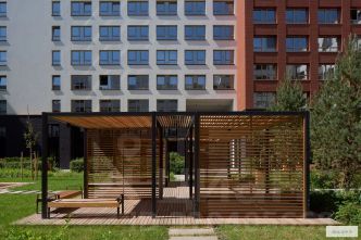 Между собой кварталы соединены широким пешеходным бульваром с игровыми и спортивными площадками, деревьями и кустарниками, привезенными из европейских питомников. Всего более 30 видов растений.