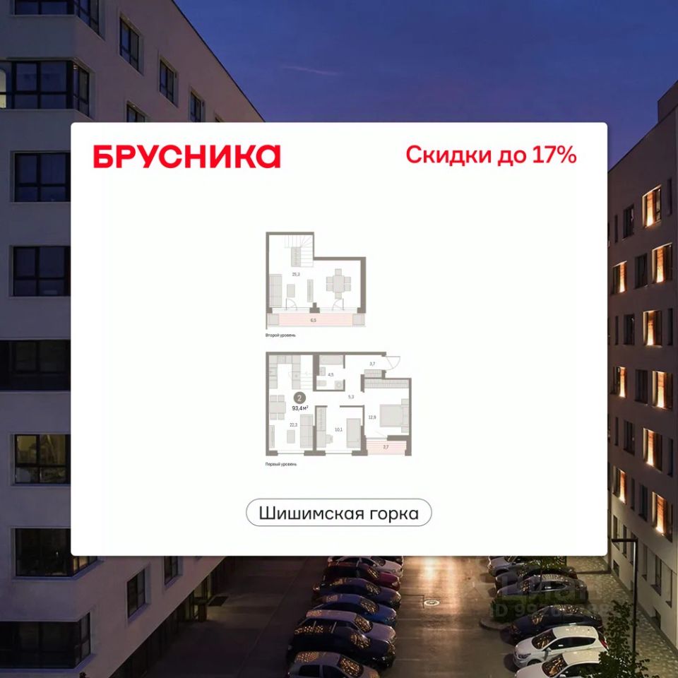 Двухуровневая квартира с кухней-гостиной и двумя спальнями в районе Шишимская горка. Особенности планировки: вид во двор, двухуровневая, лоджия, предчистовая отделка, терраса на крыше.