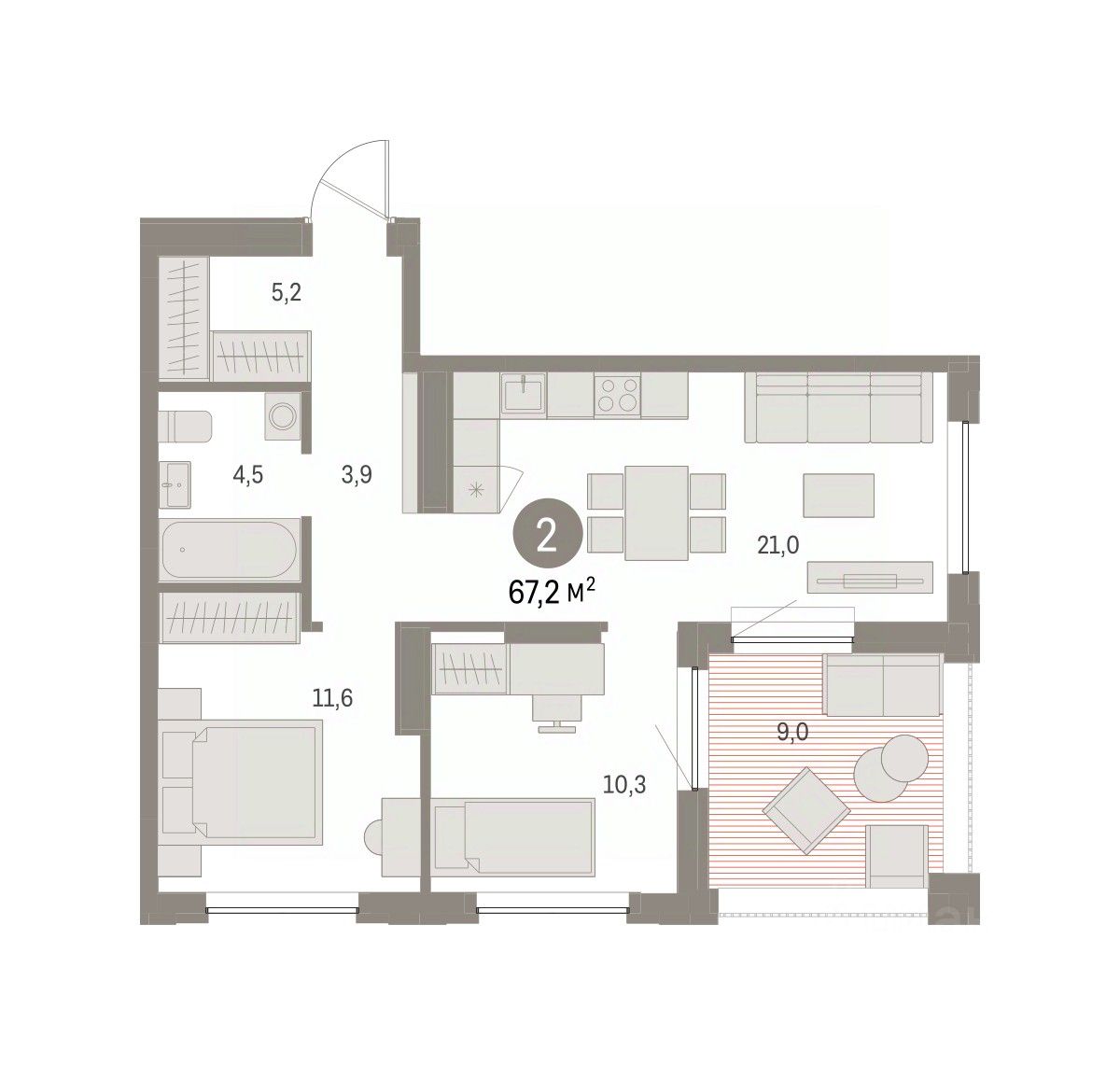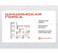 Квартира с кухней-гостиной и двумя спальнями в районе Шишимская горка. Особенности планировки: предчистовая отделка, терраса на крыше.