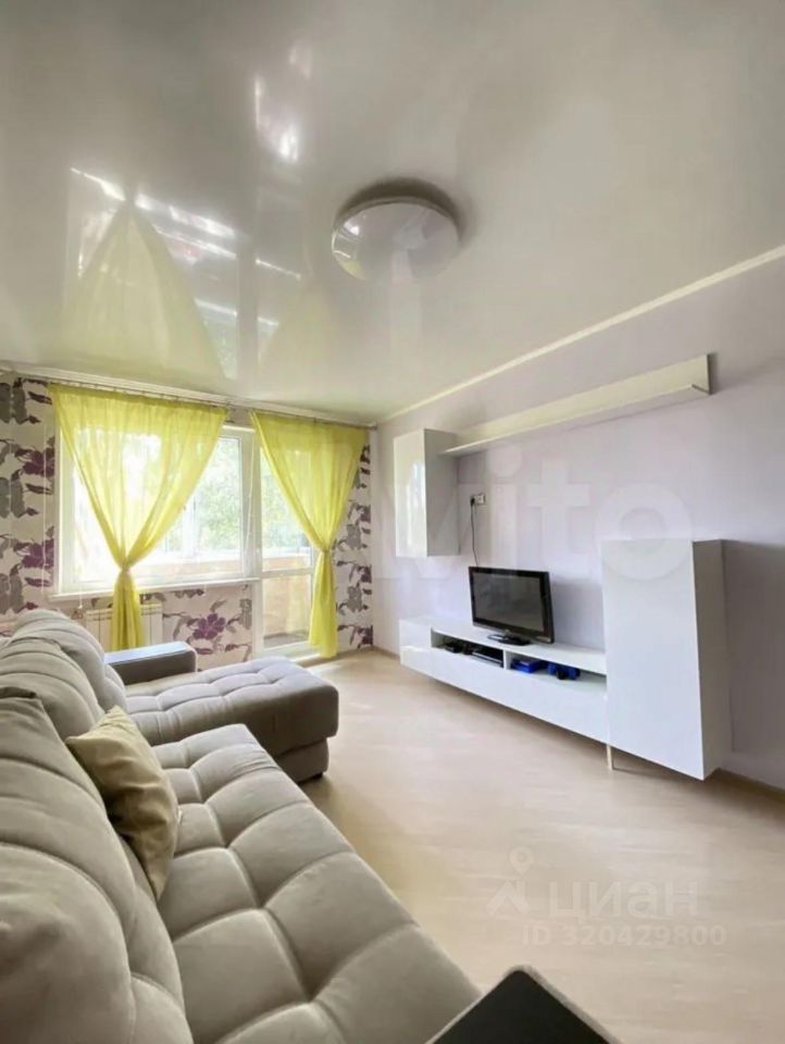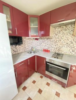 Во всей квартире натяжные потолки, в комнатах ламинат; прихожая, ванная и кухня - плитка