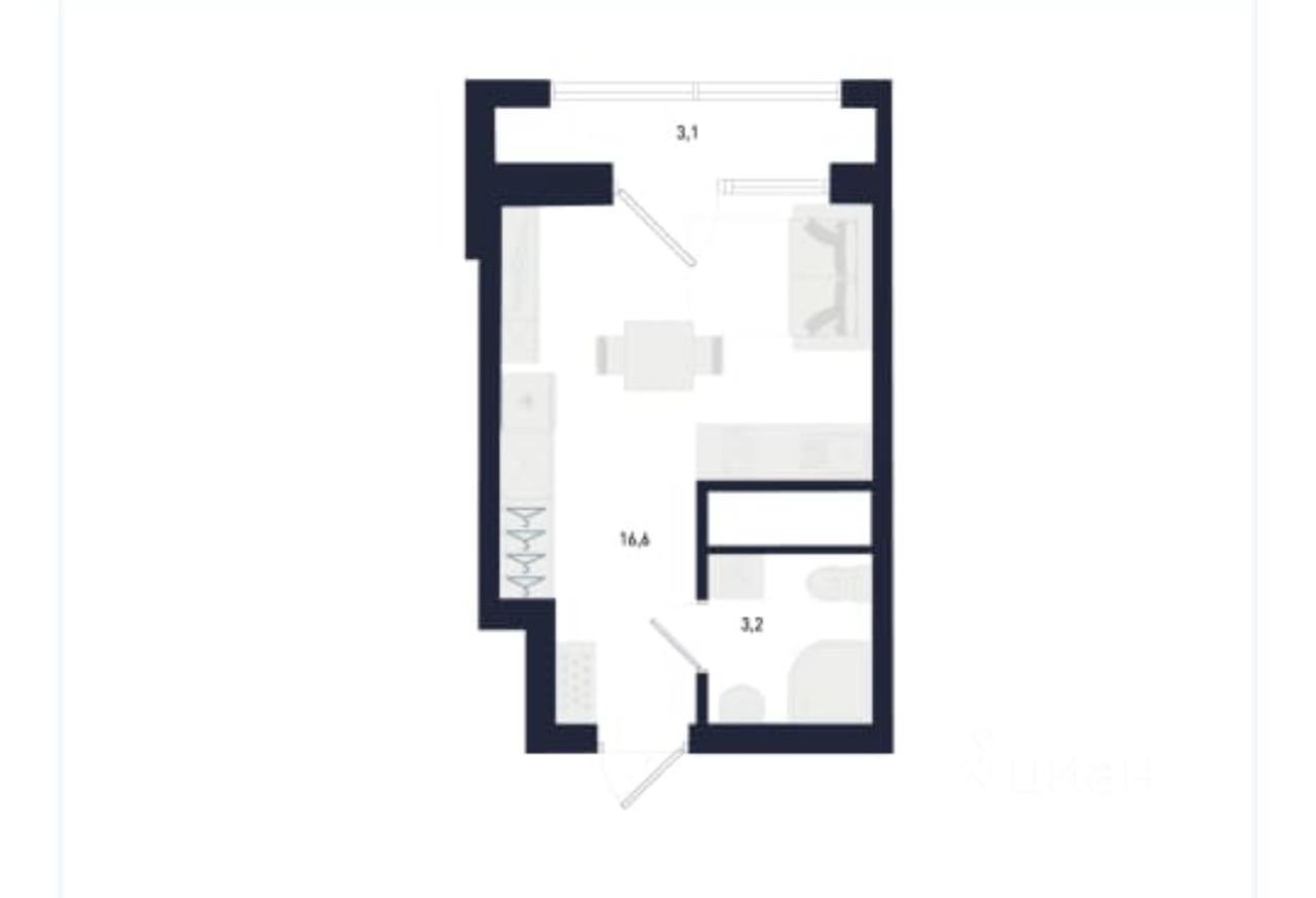 Светлая студия с чистовой отделкой на 22 этаже, общая площадь 20,8 м2