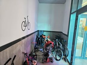 Место для колясок, велосипедов удобно для семей с детьми.